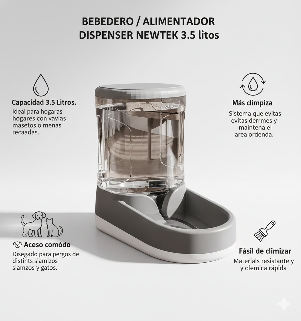 Bebedero Newtek 3.5L + Guante masajeador quita pelos DE REGALO